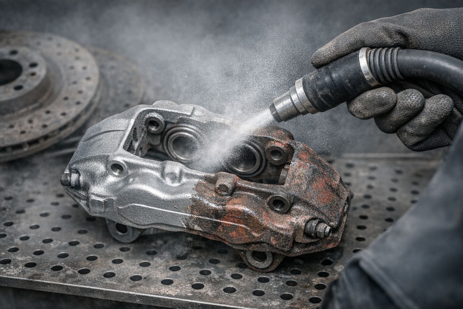 Пескоструйная обработка суппорта тормоза